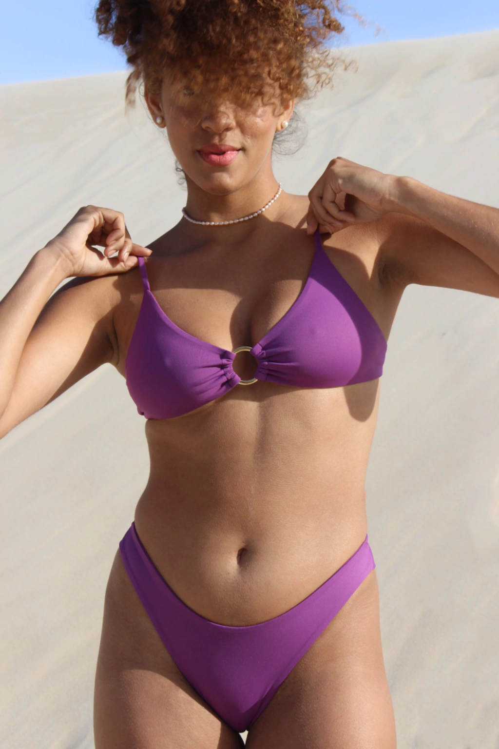 Calcinha na cor Roxo, no modelo asa delta semi-fio. Modelagem confortável e que não aperta nas laterais.